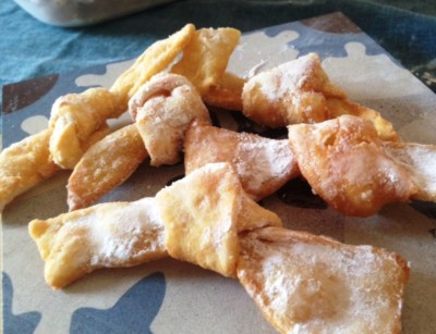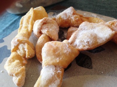 Ingredients: 500 - 600 g plain flour 2 eggs 1 cup sour cream 1 - 2 tbsp rum 1 dl white wine 1 pouch vanilla sugar 150 g icing sugar Method: Combine the flour, vanilla sugar, eggs, cream, rum and wine to make smooth dough. Set aside to rest for 10 minutes, [...]